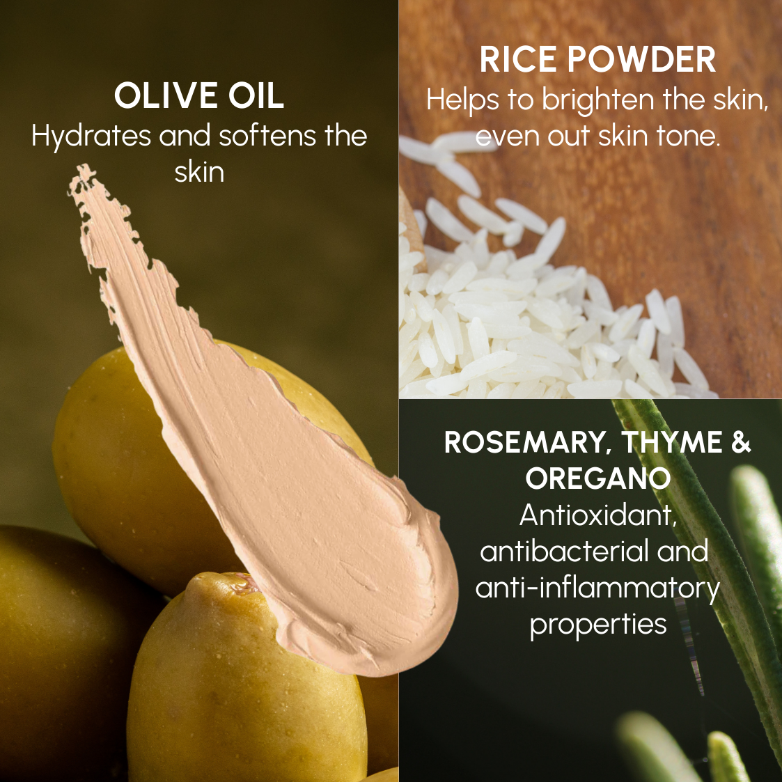 Enriched with olive oil, this creamy formula blends beautifully for effortless application, while rosemary & thyme safeguard your skin against environmental damage.